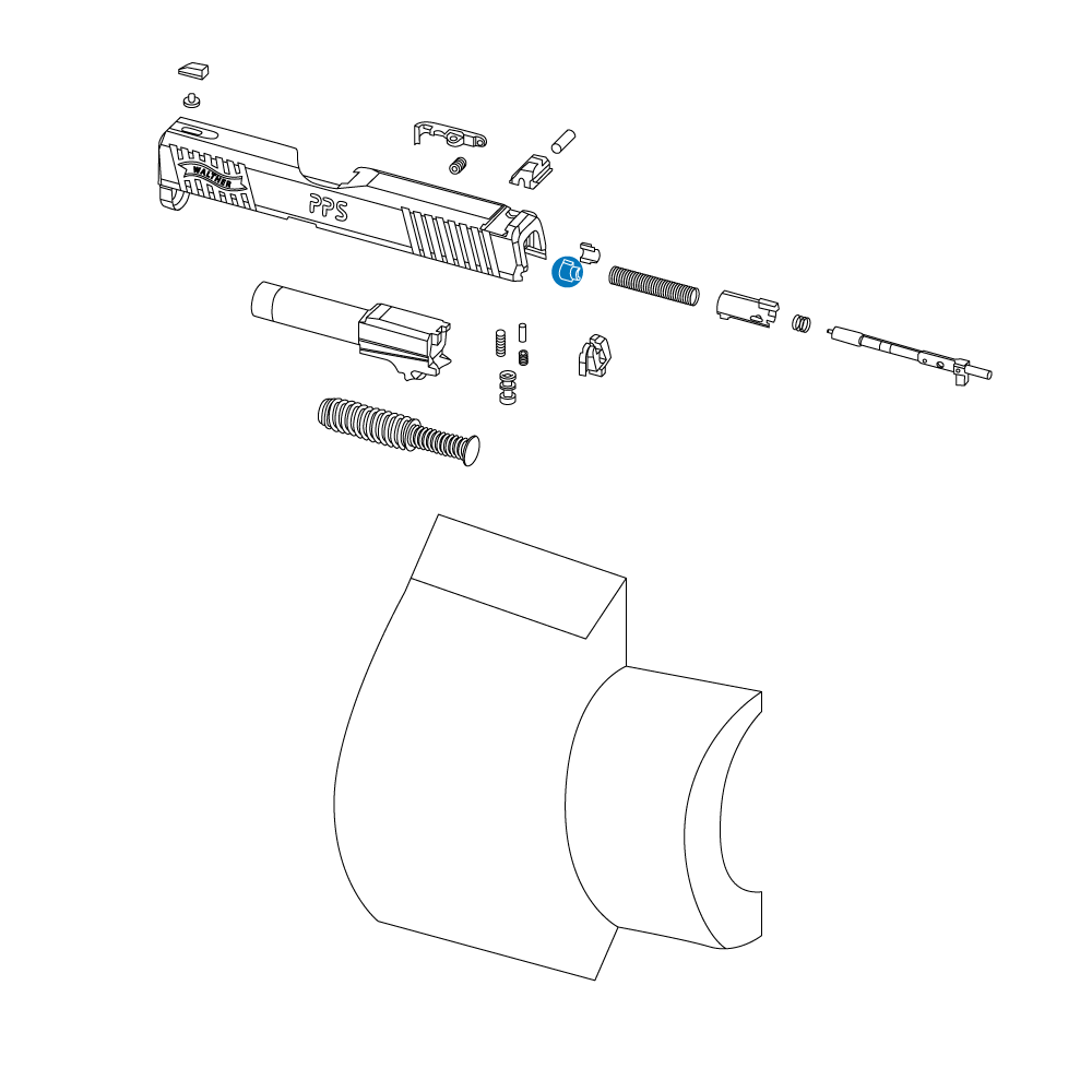 A replacement striker spring keeper for the PPS series of pistols